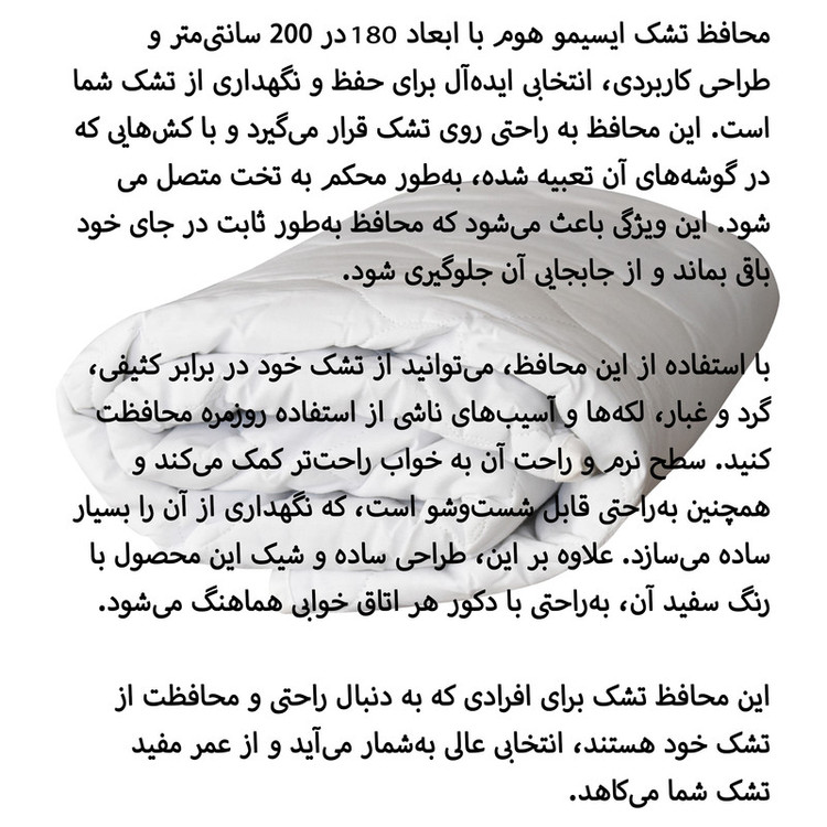 محافظ تشک ایسیمو هوم مدل ضد آب تک نفره سایز 200×180 سانتی متر