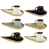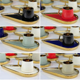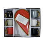 محصول کشور ترکیه - دارای 6 فنجان و 6 نعلبکی به رنگ های متفاوت - قابل شستشو در ماشین ظرفشویی - رنگ بندی فنجان : مشکی، قرمز، فیلی، نسکافه ای، سفید، مشکی - رنگ بندی نعلبکی : مشکی، قرمز، فیلی، نسکافه ای، سفید، کاربنی