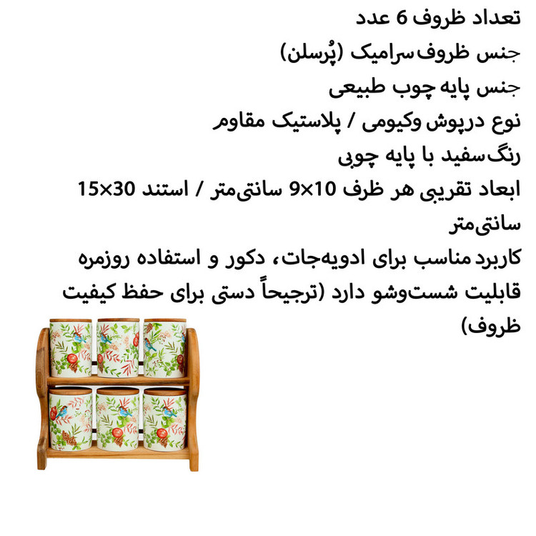 ست جا ادویه 6 تکه میس بتی مدل Mira به همراه استند