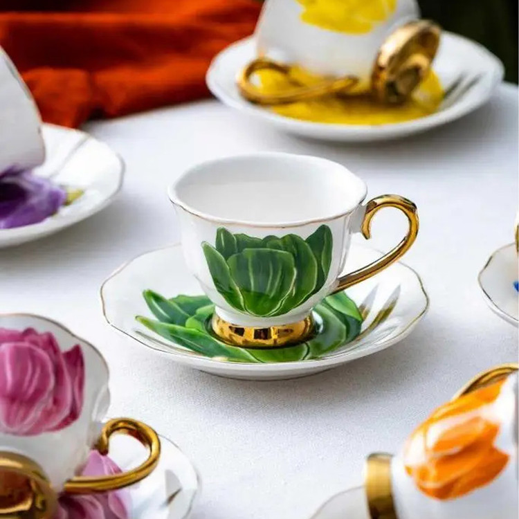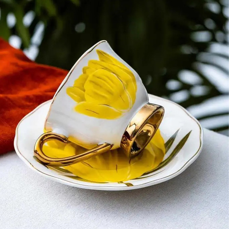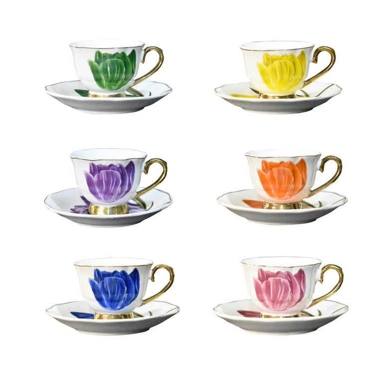 محصول کشور ترکیه - دارای 6 فنجان و 6 نعلبکی به طرح های متفاوت - قابل شستشو در ماشین ظرفشویی