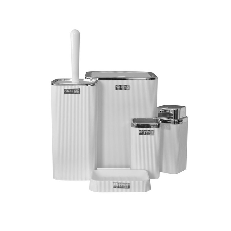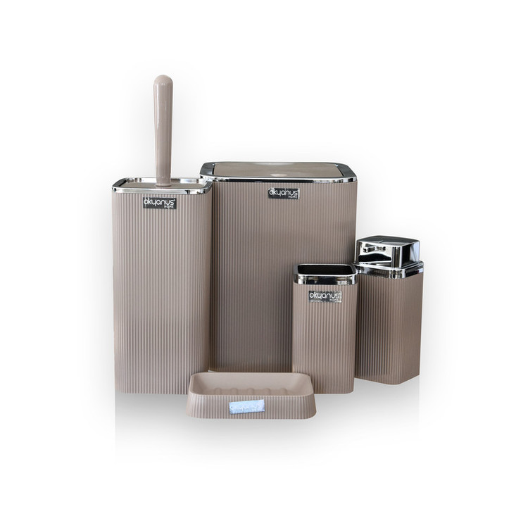 سطل : 18x18x23 سانتی متر - جا صابونی : 8x12x3 سانتی متر - جا مایع : 7x7x16 - جا مسواکی : 7x7x13 - فرچه : 11x11x23