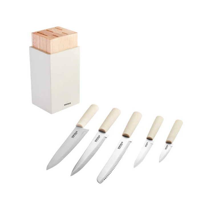 برند : karaca - مجموعه 6 پارچه متشکل از 5 سایز چاقو در سایزهای مختلف و استند - ابعاد چاقو : 20cm - 32cm - 32cm - 32cm - 23cm - ابعاد استند : 10x10x22 cm - جنس : فولاد ضد زنگ - قابلیت شستشو در ماشین ظرفشویی - چاقو بسیار تیز و برنده