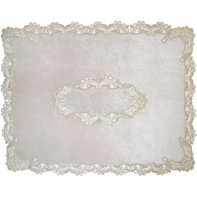 جنس : مخمل - ابعاد : 210x150 سانتی متر - دارای حاشیه های گیپوری و توری