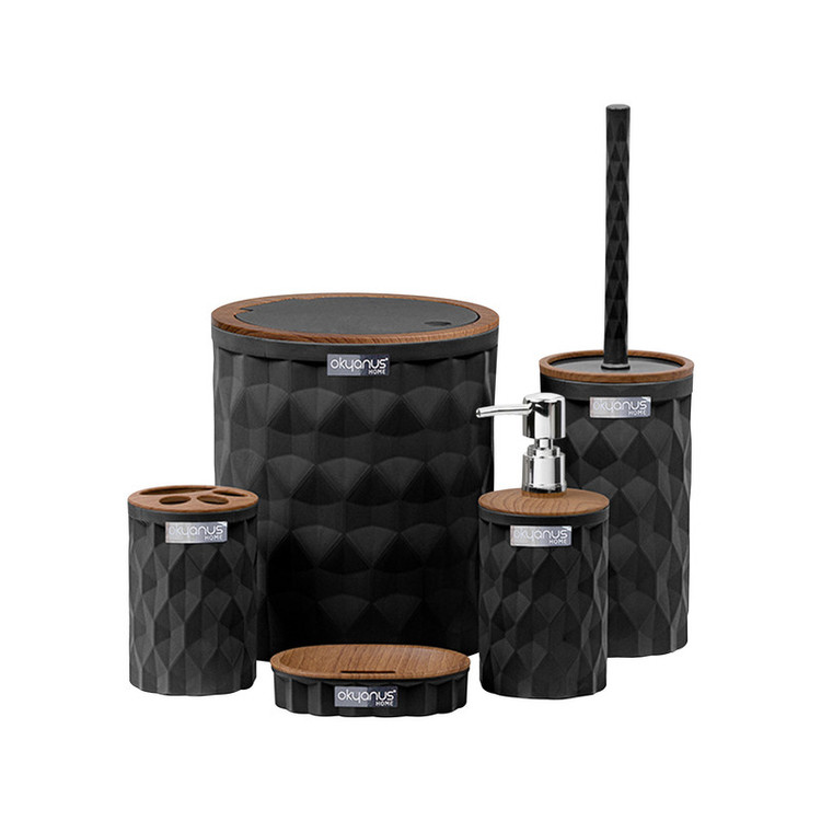 توضیحات ابعاد : سطل : 22.3x19 سانتی متر فرچه : 36.5x10.3 سانتی متر جا مایع : 18.8x9 سانتی متر جا مسواکی : 18.8x8.5 سانتی متر جا صابونی : 12.5x9x2.9 سانتی متر