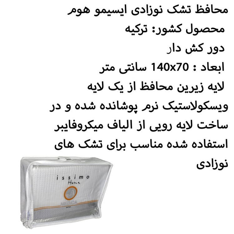 محافظ تشک نوزادی ایسیمو هوم - محصول کشور: ترکیه - دور کش دار - ابعاد : 140x70 سانتی متر - لایه زیرین محافظ از یک لایه ویسکولاستیک نرم پوشانده شده و در ساخت لایه رویی از الیاف میکروفایبر استفاده شده مناسب برای تشک های نوزادی