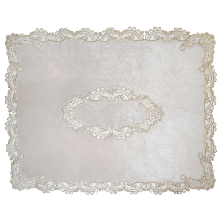 جنس : مخمل - ابعاد : 220x160x1 سانتی متر - دارای حاشیه های گیپوری و توری