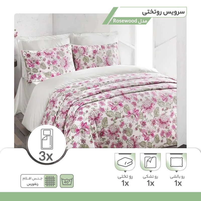 سرویس ملحفه ایسیمو هوم مدل Rosewood یک نفره 3 تکه