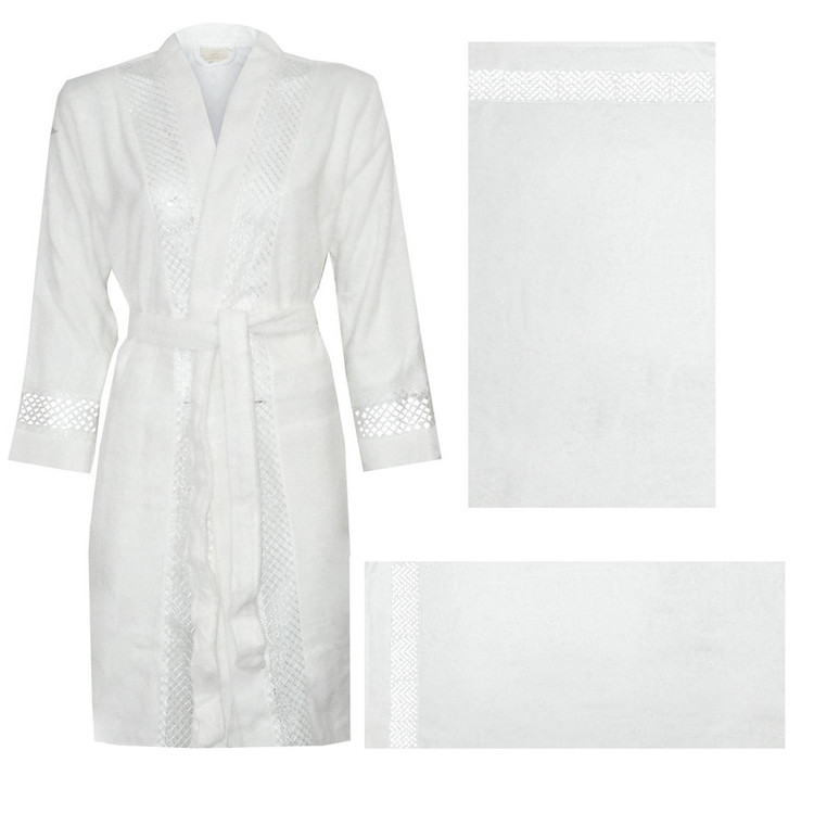 محصول کشور ترکیه - آبگیری بالا - عدم حساسیت - جنسی نرم و لطیف - قد 100 سانتی متر - دور کمر 100 سانتی متر - عرض شانه 45 سانتی متر - حوله حمام 70x140 سانتی متر - حوله دستی 50x90 سانتی متر