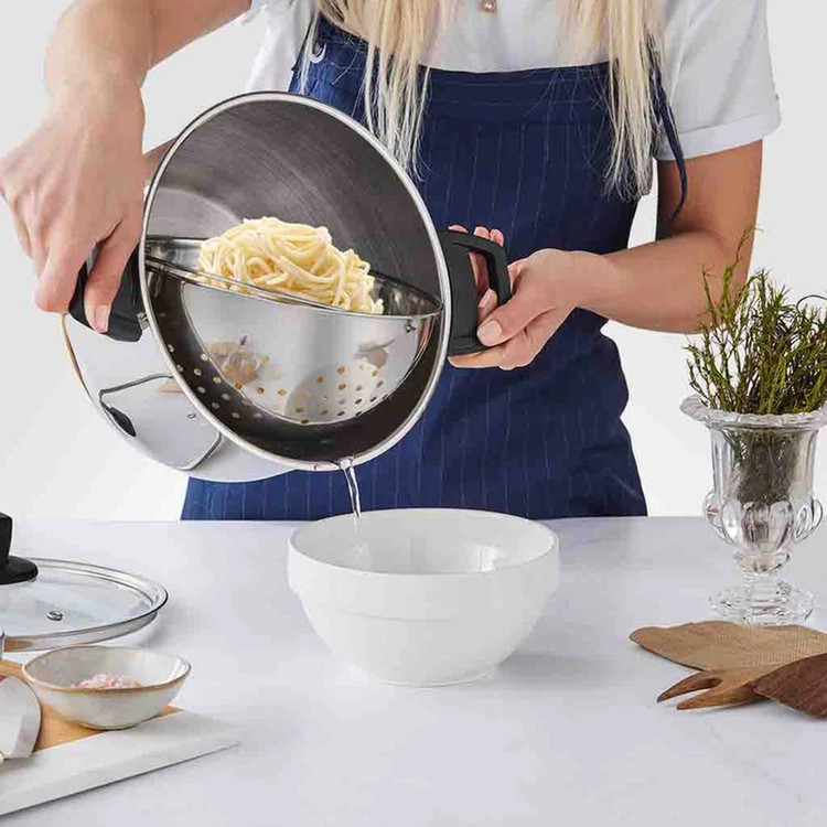محصول کشور ترکیه - قابلمه مخصوص آبکشی از جنس استیل ضد زنگ - سایز 24 سانتی متر - هم به عنوان آبکش و هم قابلمه استفاده کرد - مخصوص آبکشی ماکرونی