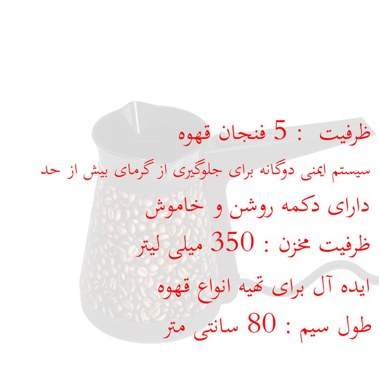 محصول کشور ترکیه ظرفیت 350 میلی لیتر ( 5 فنجان ) طول سیم 80 سانتی متر سیستم ایمنی دو گانه برای جلو گیری از گرمای بیش از حد ایده آل برای تهیه انواع قهوه