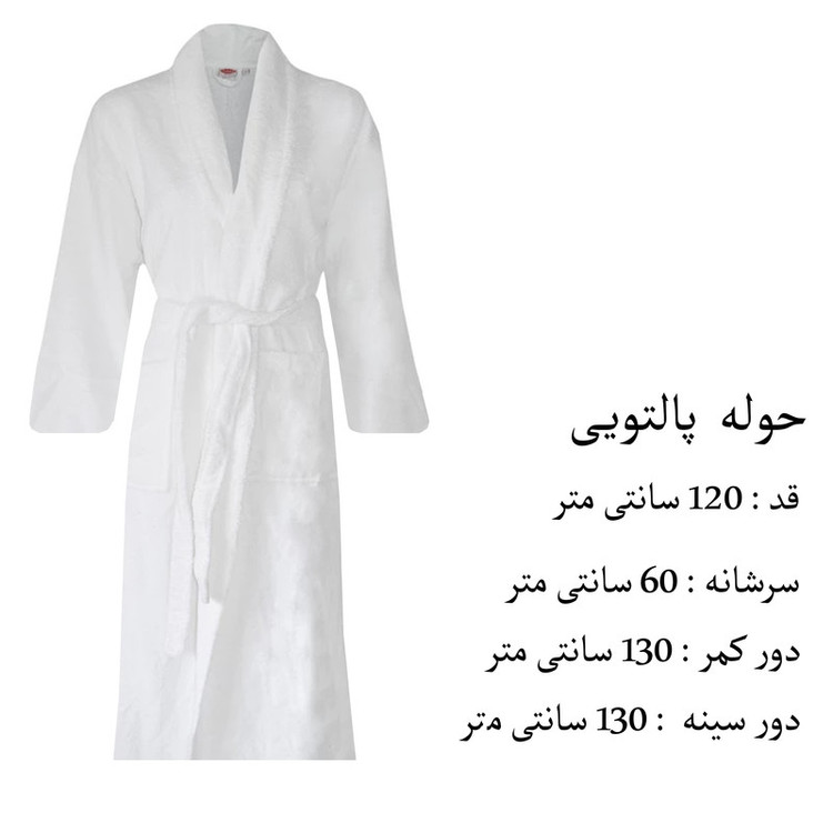 مبدا کالا : ترکیه جنس : 60% بامبو - 40% پنبه جیب : دارد کلاه : ندارد بند : دارد قد حوله پالتویی : 125 سانتی متر سرشانه : 60 سانتی متر دور کمر : 130 سانتی متر دور سینه : 130 سانتی متر ابعاد حوله دست و صورت : 88x50 سانتی متر