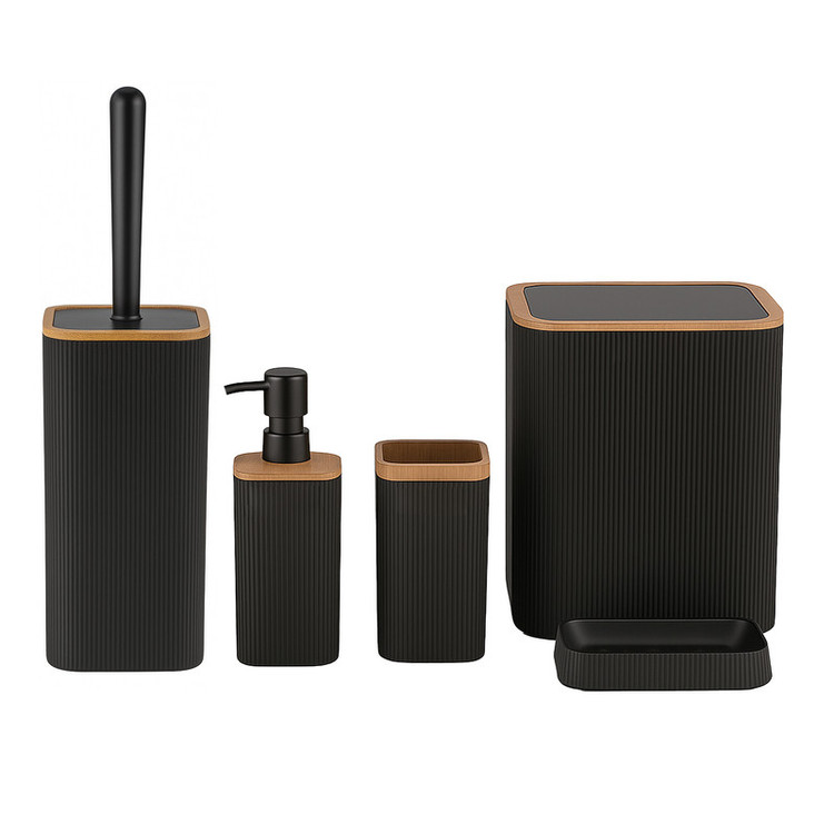 محصول کشور ترکیه - برند فری هوم - مجموعه 5 پارچه متشکل از سطل به ابعاد 18x18x22 سانتی متر ، فرچه 10x10x35 سانتی متر ، جا مایع 7x7x18 سانتی متر ، جاصابونی 13x3x9 سانتی متر و جامسواکی 13x7x7 سانتی متر - جنس مجموعه : آکریلیک