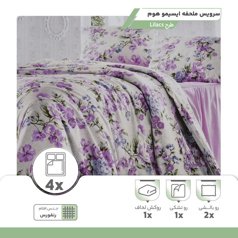 سرویس ملحفه ایسیمو هوم طرح Lilacs دونفره 4 تکه