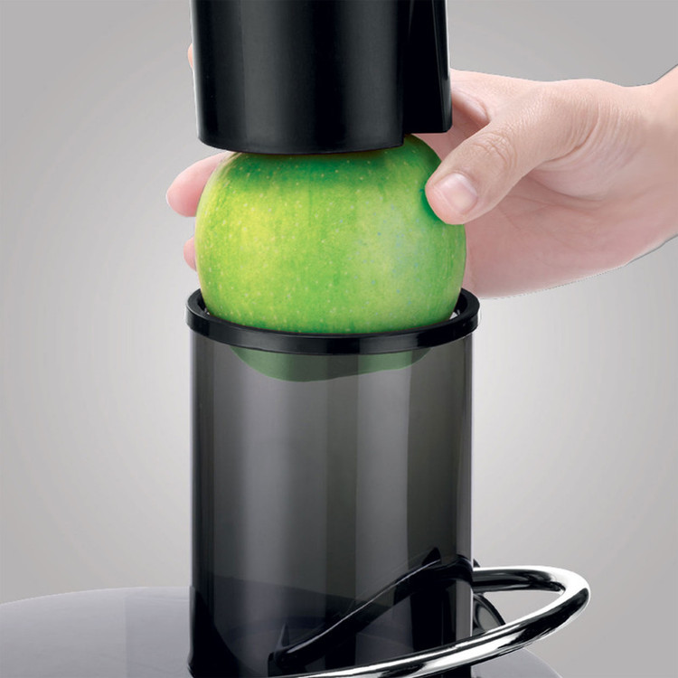 لاستیک ضد لغزش - حداکثر توان مصرفی : 600 وات - دارای قفل امنیتی - عملکرد ضد چکه - فیلتر توری میکرو سوراخ شده از فولاد ضد زنگ - دهانه بزرگ برای انواع میوه - دارای کلید تنظیم دو حالته سرعت
