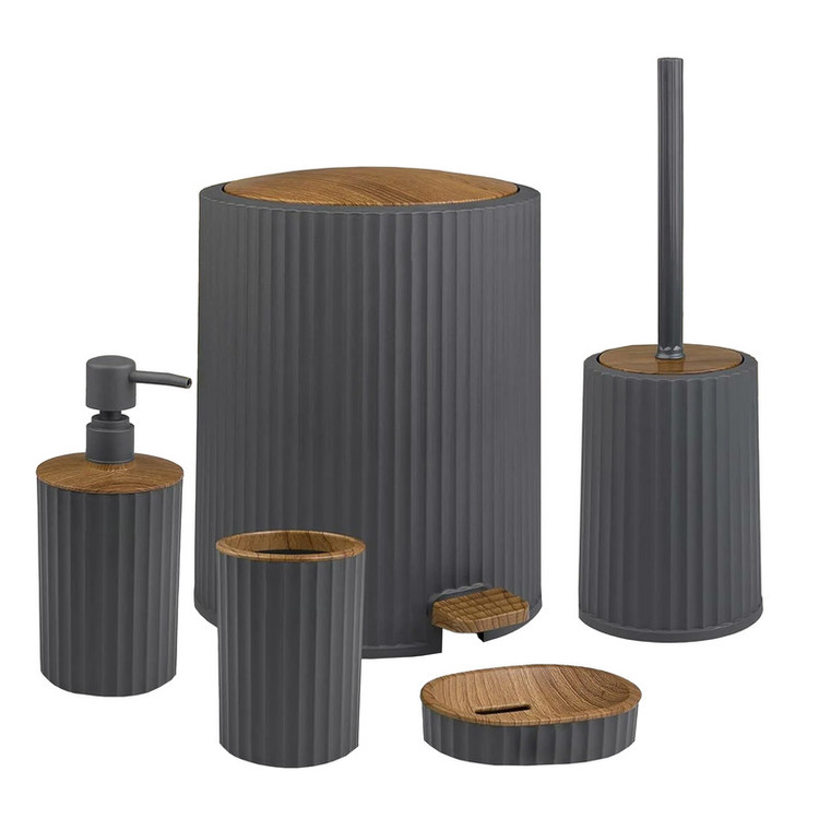 سطل زباله : 22.7*21*26.1 فرچه دستشویی : 10.5*119*34 مخزن مایع دستشویی : 8*8.5*19 جامسواکی : 8.3*8*12 جا صابونی : 9*912.5*2.8