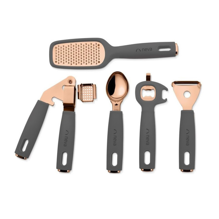 ابعاد: 1 رنده 24 سانتی متر 1 عدد اسکوپ بستنی 19 سانتی متری پوست کن 1 عدد 17 سانتی متر پرس سیر 1 عدد 18 سانتی متر 1 عدد درب بازکن 18 سانتی متر