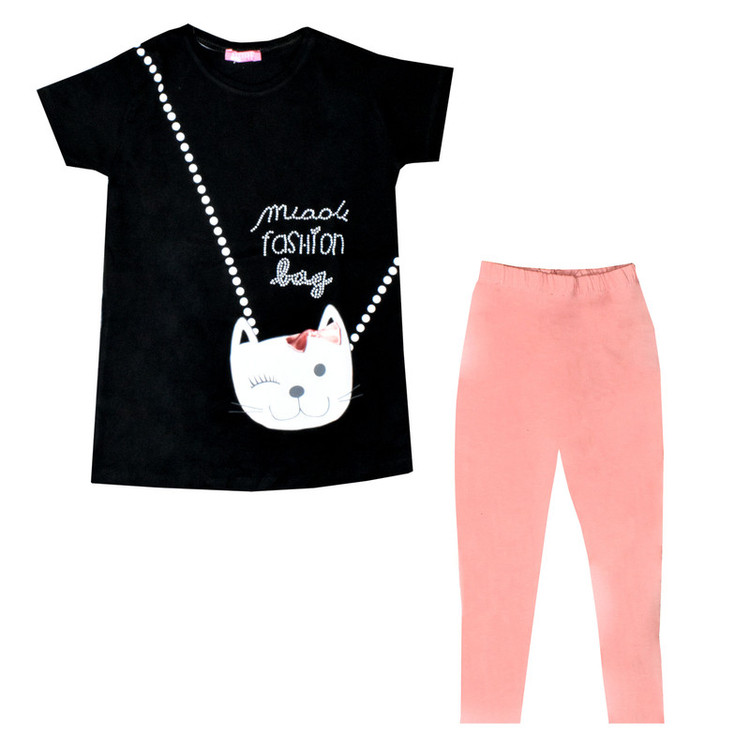 ست تی شرت آستین کوتاه و شلوار دخترانه الیتول مدل 3763