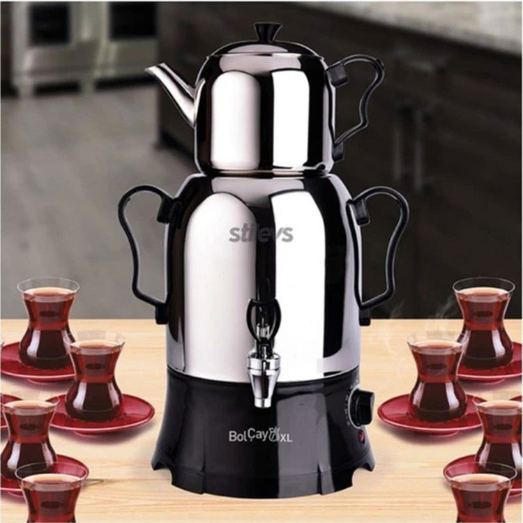 محصول کشور ترکیه - دارای قوری 1.5 لیتری و سماور 5 لیتری - خاموش شدن خودکار جلوگیری از عملکرد بدون آب و سوختگی - ترموستات دوبل - حمل آسان به لطف دستگیره های محصول - شستشویی آسان - دارای ویژگی حفظ گرما جهت کهنه نشدن چای و صرفه جویی در زمان و انرژی شما