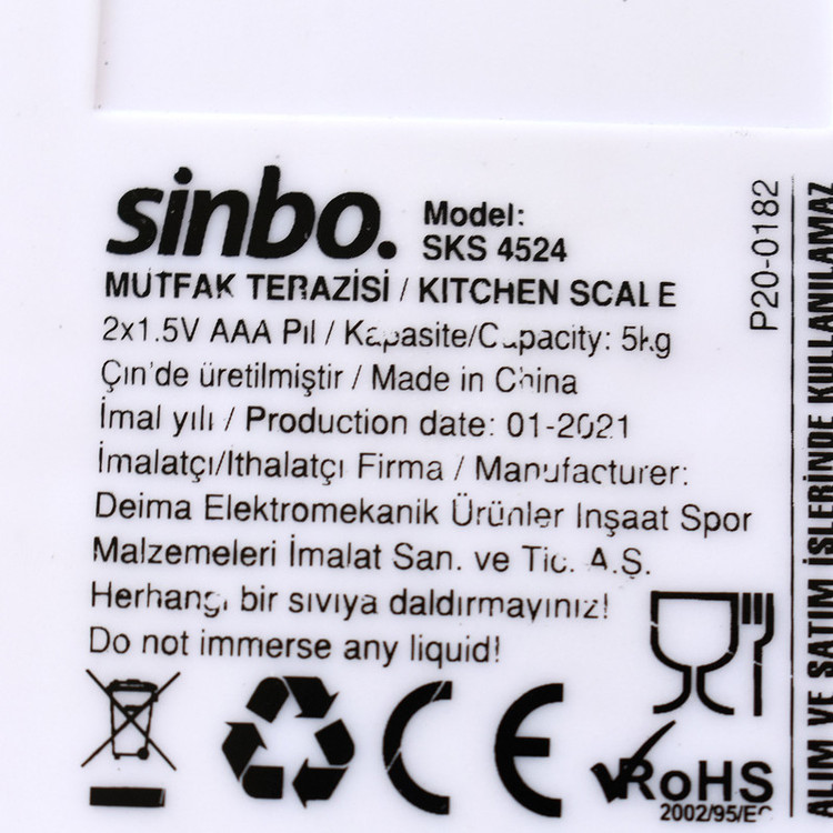 ترازوی آشپزخانه سینبو مدل SKS - 4524