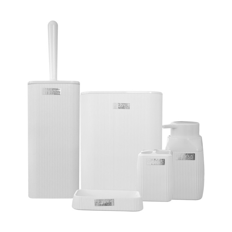 سطل : 18x18x22.5 سانتی متر - فرچه : 10x10x22 سانتی متر - جامایع : 6x6x11 - جامسواکی : 7x7x9.5 - جا صابونی : 12.5x8.5x3
