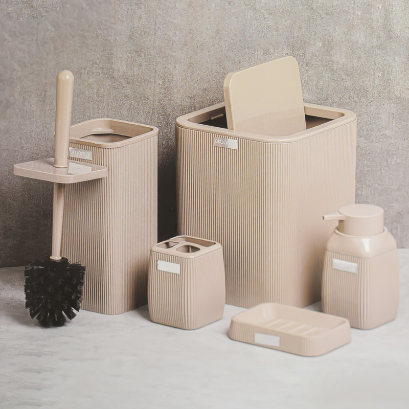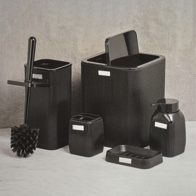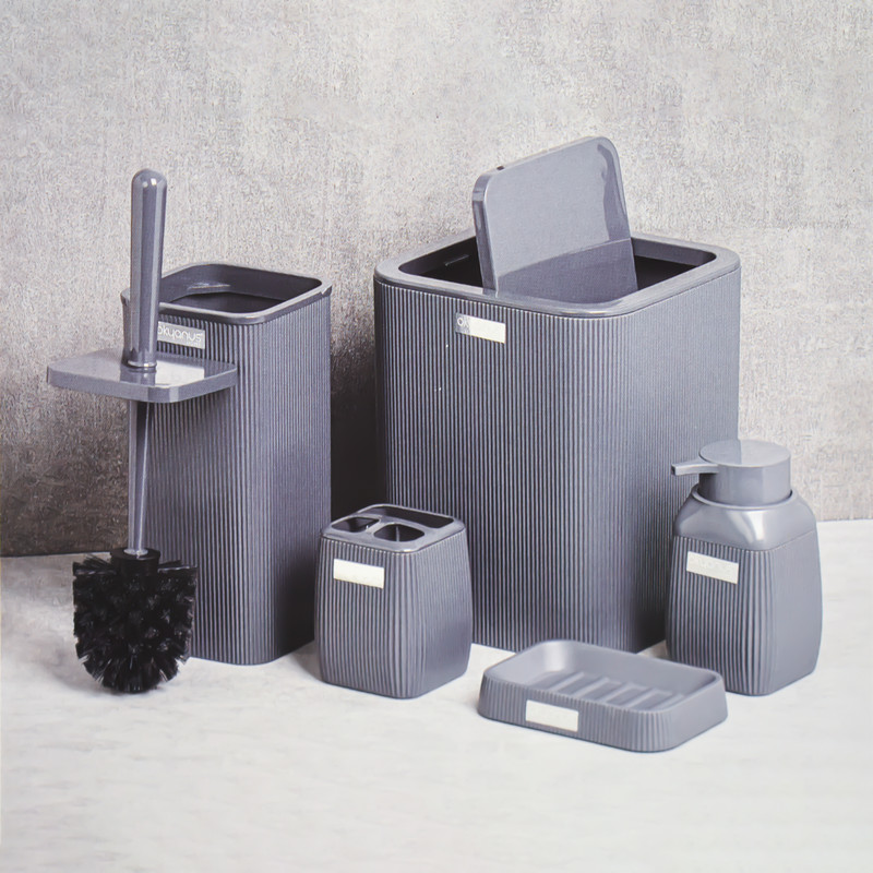 سطل : 18x18x22.5 سانتی متر - فرچه : 10x10x22 سانتی متر - جامایع : 6x6x11 - جامسواکی : 7x7x9.5 - جا صابونی : 12.5x8.5x3