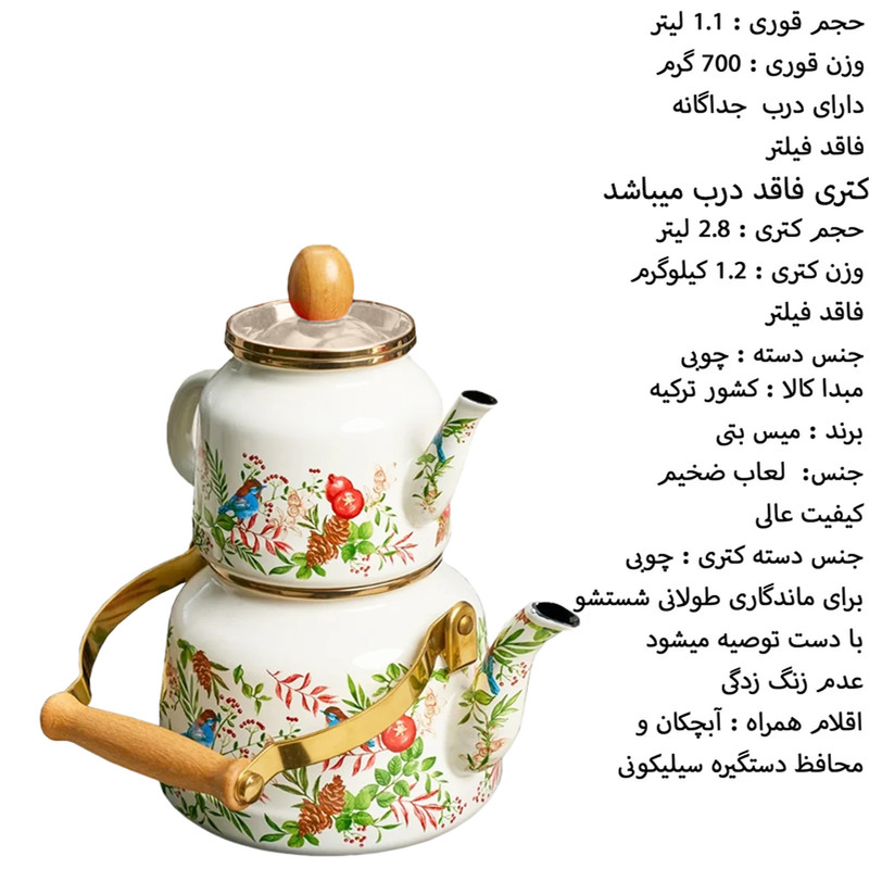 ست کتری و قوری میس بتی مدل KR04 گنجایش کتری 2.5 لیتر