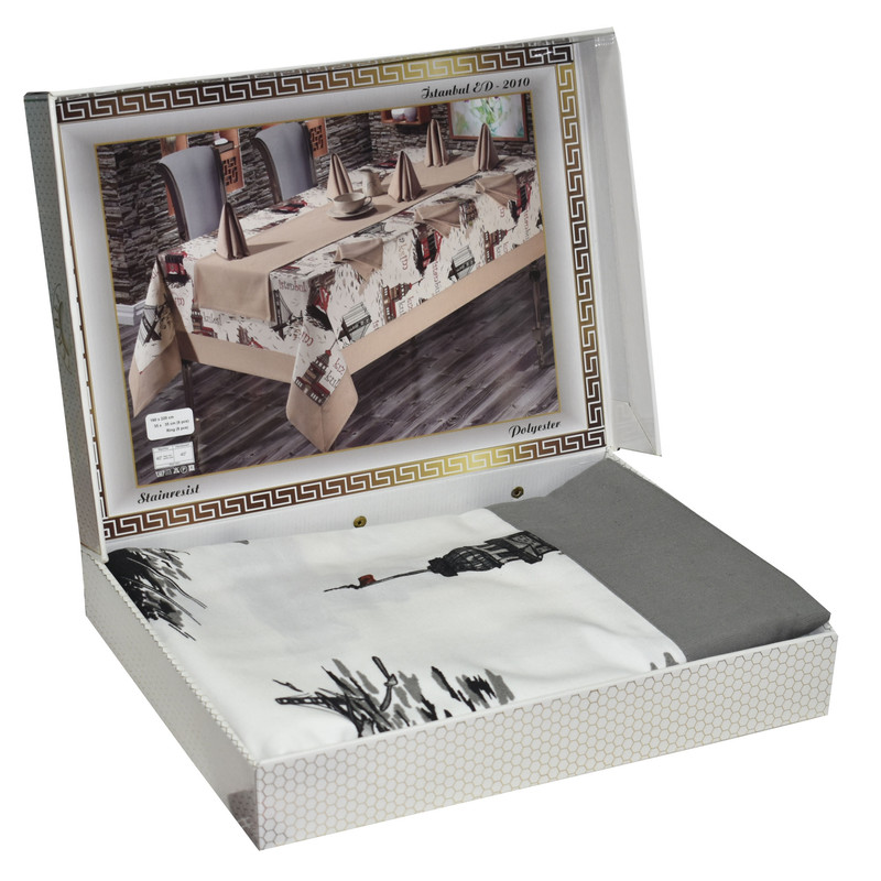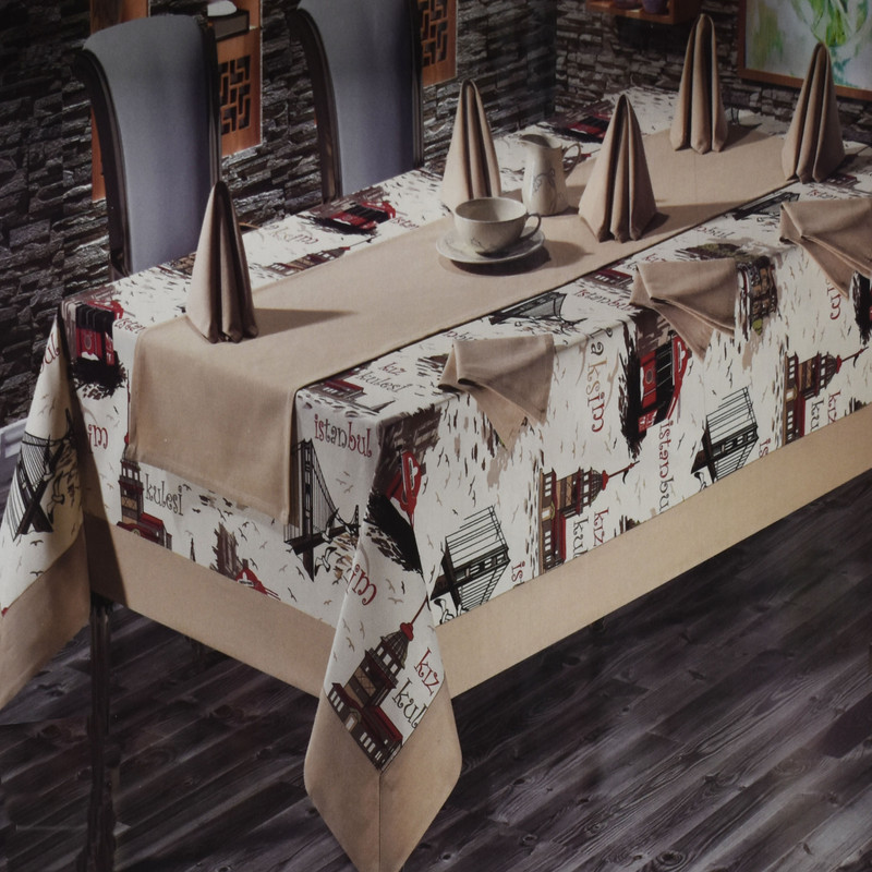 محصول 9 تکه شامل: رومیزی :160×220 سانتی متر 8 عدد زیر بشقابی: 35×35 سانتی متر یک عدد رانر: 155 سانتی متر