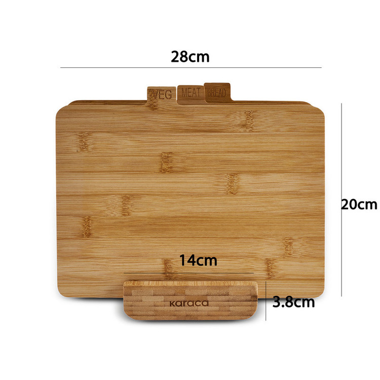 تخته برش 4 تکه کاراجا مدل Arel - جنس چوب: بامبو - محصول کشور: ترکیه - مجموعه 3 عددی به همراه استند چوبی - ابعاد: 28x22x0.9سانتی متر - ابعاد استند: 14x10x3.8 سانتی متر - دارای خاصیت ضد باکتری - مقاوم در برابر آب - عدم تاپ خوردگی هنگام خیس شدن