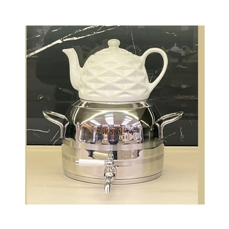 ست زیبای کتری استیل و قوری چینی ساخته شده از بهترین متریال با طرحی از ترکیه