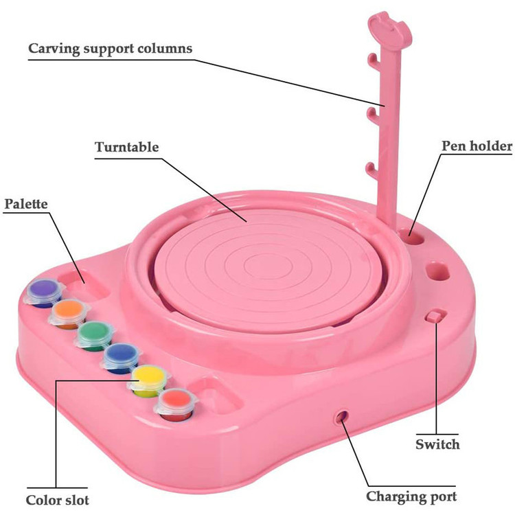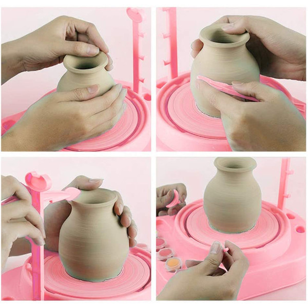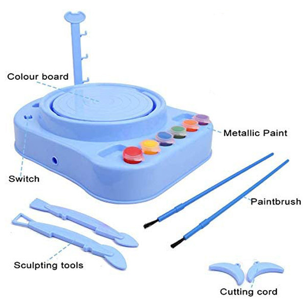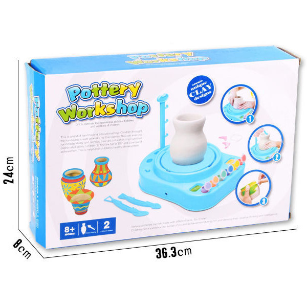 یک اسباب بازی کاربردی و مجهز برای آموزش هنر سفالگری و تقویت مهارت های دست ورزی و هوش فضایی کودکان که میتواند علاوه بر آموزش برای ساعت ها کودکان را سرگرم کند. شما میتوانید با قرار دادن باتری (4 باطری قلمی) داخل این دستگاه در هر کجا از آن استفاده کنید.برای شروع میتوانید دستگاه را روی سرعت کم گذاشته و به آرامی شروع به یادگیری کنید و وقتی به خوبی سفالگری را آموختید میتوانید سرعت چرخش را بیشتر کرده و سطح جدیدی را تجربه کنید. همچنین به وسیله رنگ و ابزارهای داخل بسته میتوانید به گل شکل دهید و آن را رنگ آمیزی کنید.