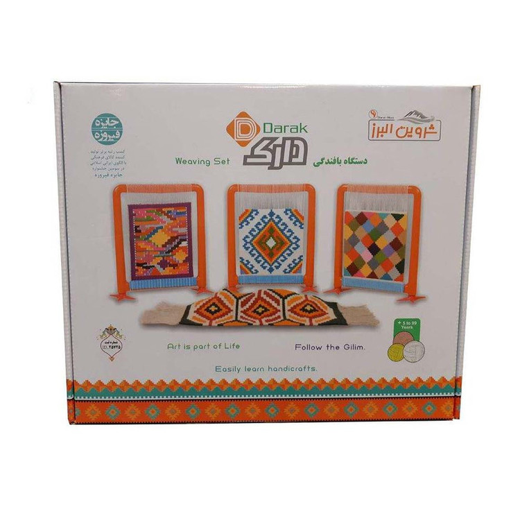 دستگاه بافندگی دارک یک محصول فوق العاده برای سرگرمی کوچکترها و بزرگسالان است. این محصول که آموزش بافندگی قالی در ابعاد کوچک می باشد اوقات فراغت شما را فراهم می آورد. این محصول سبک و شکیل بوده و ساخته شده از پلیمر مقاوم و با دوام است. این دار شامل شیارهای مخصوص برای تفکیک چله ها است که سبب جلوگیری از درهم ریختی چله ها هنگام بافت می شود. این محصول چله کشی شده که آماده بافت است و قابلیت بافت دو رو و قابلیت چرخاندن چله ها بر روی دار را دارا است. با استفاده از این دستگاه شما قادر خواهید بود بافتی در ابعاد ۲۰ در ۶۰ سانتیمتر را آماده نمایید. دستگاه بافندگی دارک، دارای ابعاد 2 × 29 × 33 سانتیمتر است و در یک بسته بندی شکیل قرار دارد. محتویات بسته دارک شامل: دستگاه بافندگی چله کشی شده، خط کش یا شمشیرک،هاف، 5 عدد ماکو همراه با نخ، شانه یا دفه، CD و بروشور آموزشی است
