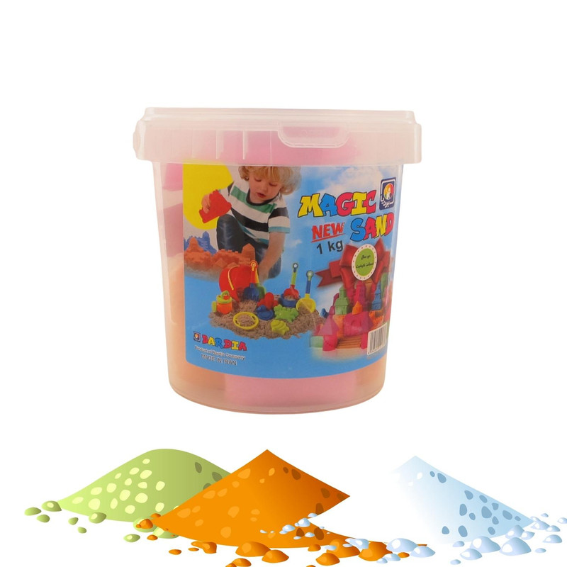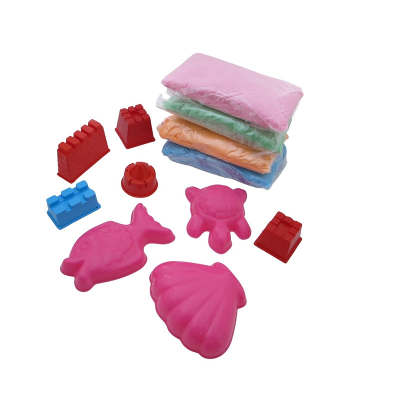 3 بسته شن بازی به رنگ های سبز زرد صورتی 4 عدد ابزار قالب
