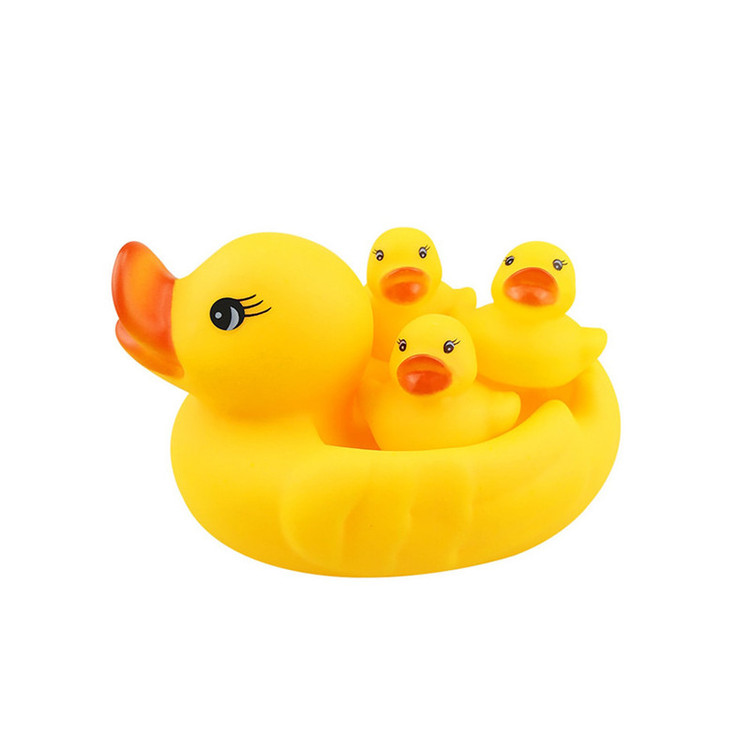 با فشار دادن جغجغه سوتی شنیده می شود ابعاد : اردک مادر :16x7x9 سانتی متر بچه ها : 3x2x3 سانتی متر