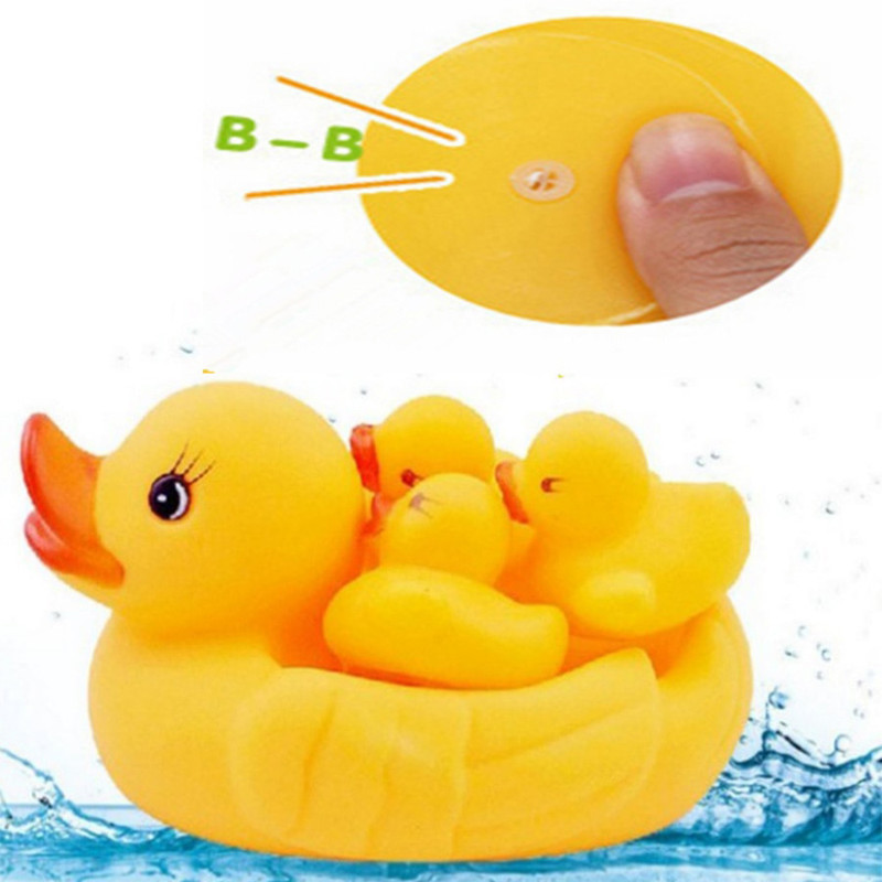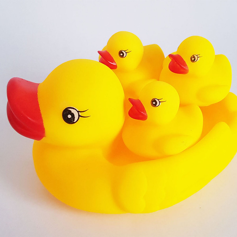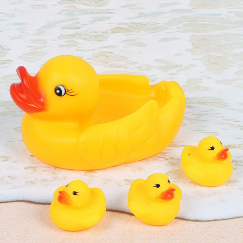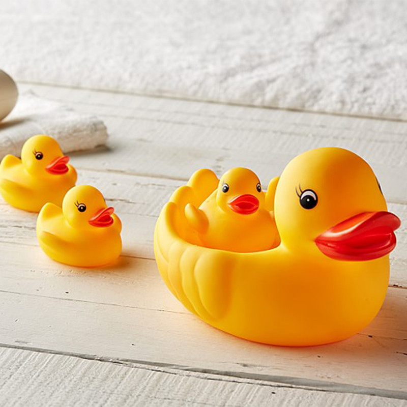 با فشار دادن جغجغه سوتی شنیده می شود ابعاد : اردک مادر :16x7x9 سانتی متر بچه ها : 3x2x3 سانتی متر
