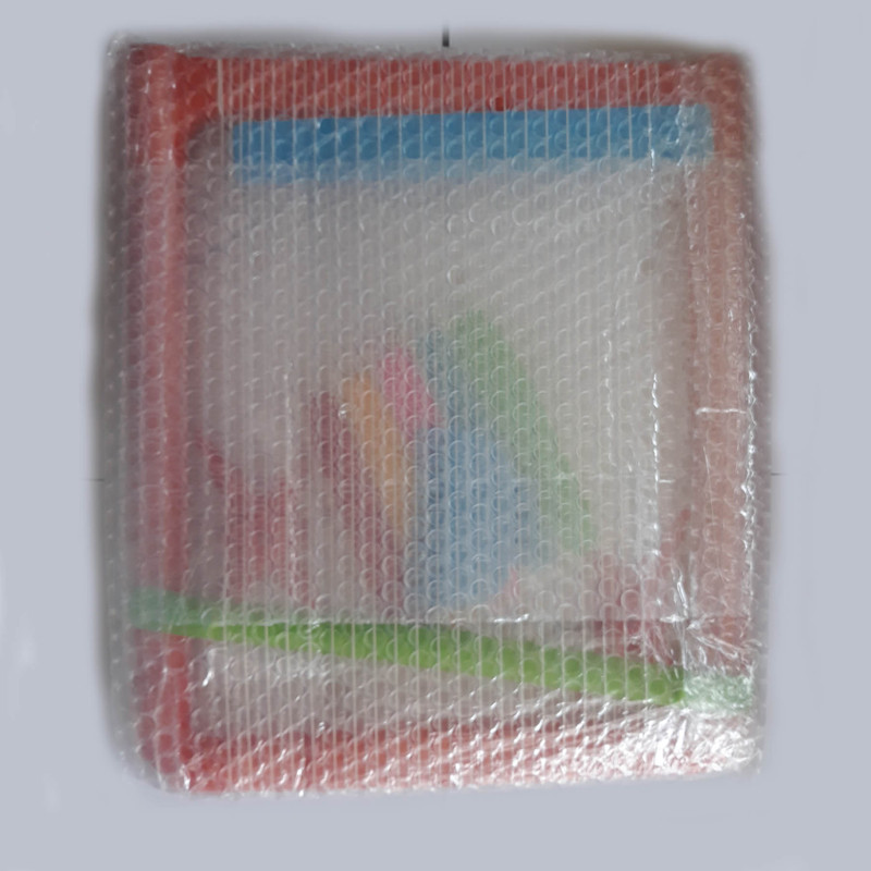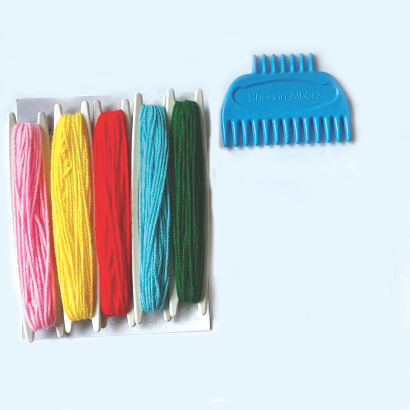 اقلام همراه : یک عدد چهارچوب بافندگی همراه با یک عدد شانه بافت یک عدد پک نخ 5 رنگ در بسته بندی با پلاستیک حباب دار