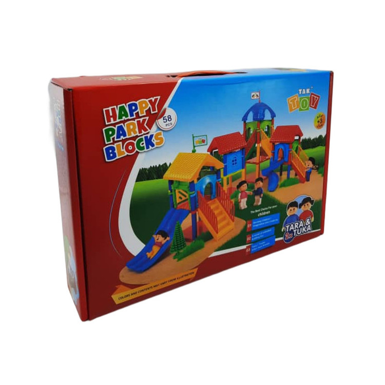 بازی فکری پارک شادی 58 قطعه نام محصولی از دسته ی ساختنی های خلاق است. این محصول یک سازه ی پلاستیکی با قطعات تشکیل دهنده ی یک پارک بازی است. با چیدن و وصل کردن قطعات کنار یکدیگر کودکان موفق می شوند که یک پارک کوچک بسازند.