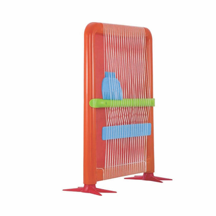 یک عدد چهارچوب بافندگی همراه با نه یک عدد شانه بافت یک عدد پک نخ 5 رنگ در بسته بندی با پلاستیک حباب دار