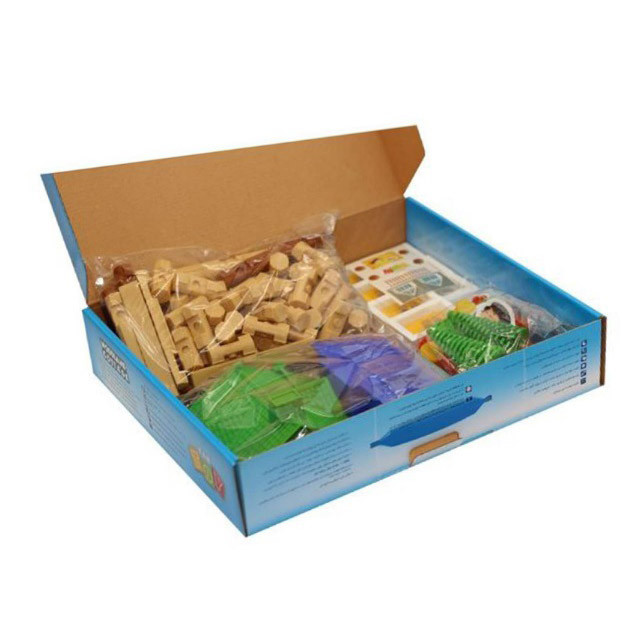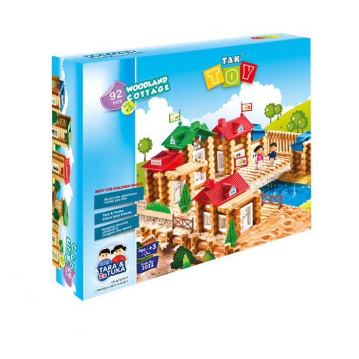 92 تکه شامل 2 آدمک و 90 تکه جهت ساخت کلبه چوبی و باغ شامل سقف، نرده، پنجره، درخت، سبزه