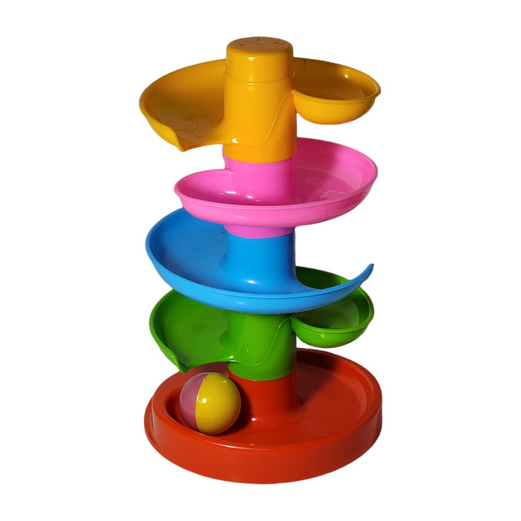 کودک با قرار دادن توپ بر روی برج، توپ رها شده از برج پایین می آید.