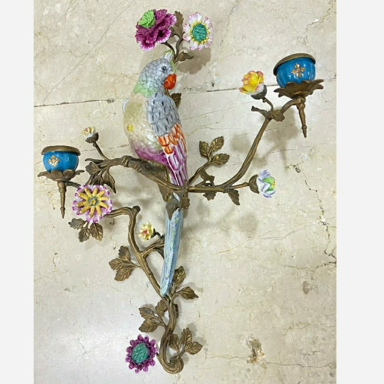 دیوار کوب چینی و برنز طرح طوطی (پس کرایه)