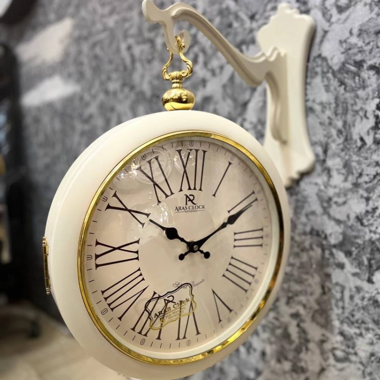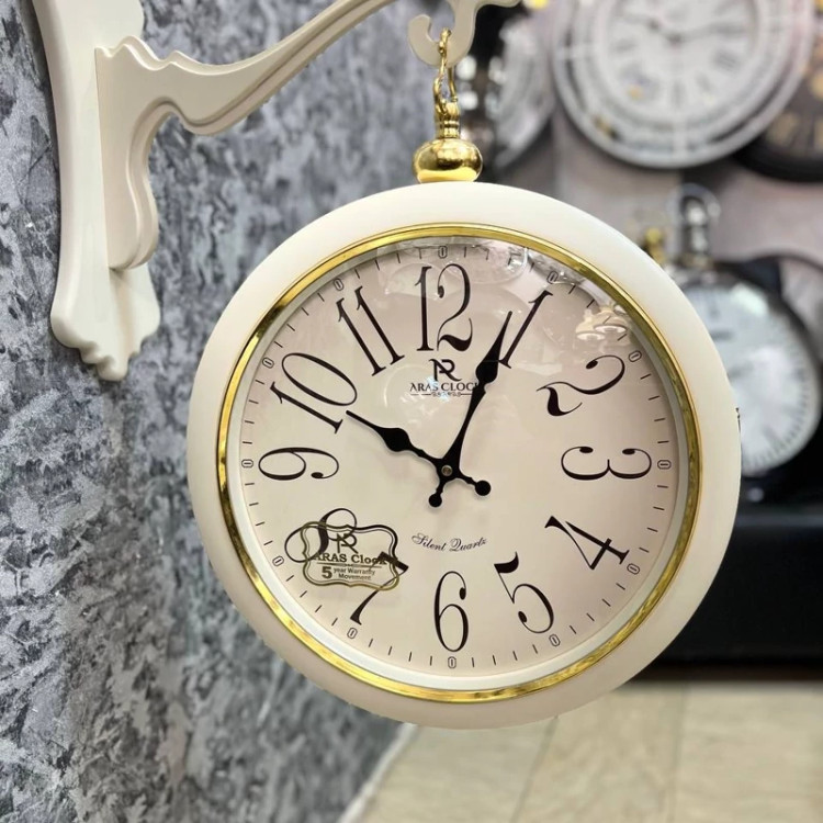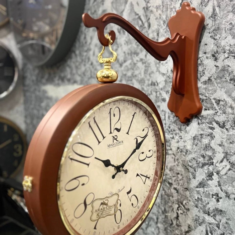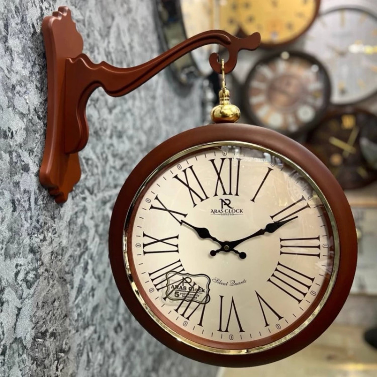 ساعت دیواری دو طرفه ارس مدل 4201، ساعت دو طرفه بسیار بینظیر عدد برجسته چوبی، تمام چوب سنگین، صفحه مشکی و رنگ طوسی
