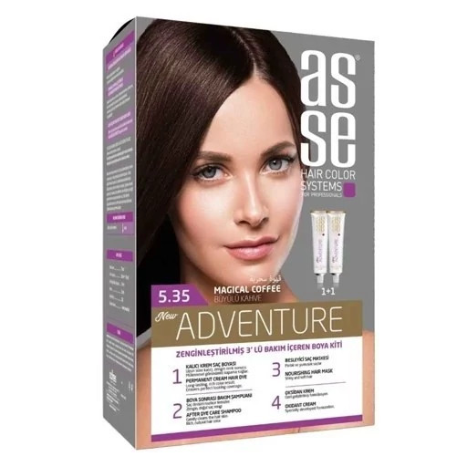 رنگ مو بدون آمونیاک آسه asse قهوه جادویی شماره 5.35 دو تیوپ حجم 50 میل