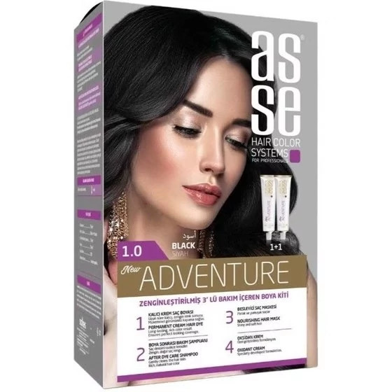 رنگ مو آسه ASSE سری ADVENTURE رنگ مشکی شماره 1.0 حاوی دو تیوپ حجم 50 میل