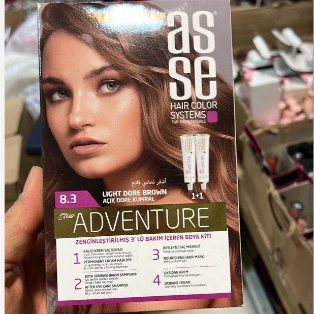 رنگ مو آسه asse سری adventur رنگ light dore brown شماره 8.3حاوی دو تیوپ حجم 50 میل