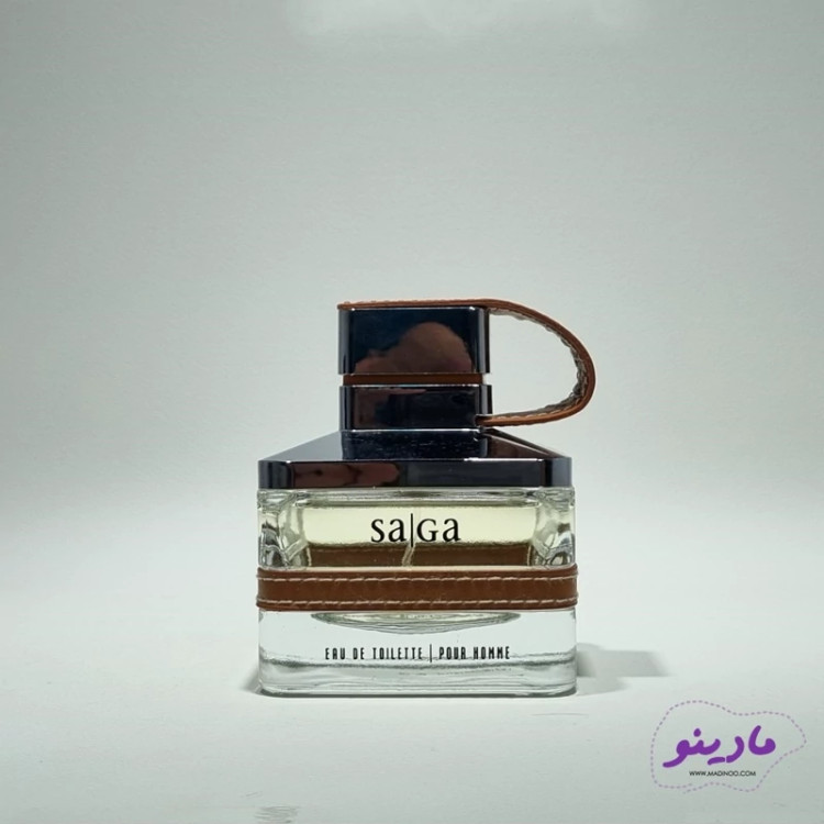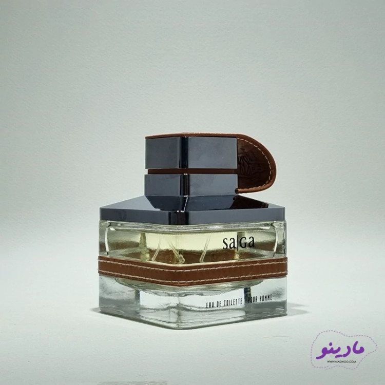 عطر ادکلن ساگا مشکی مردانه Saga For Man 100 میل شیشه ای با دوخت چرم و خوش دست دارد.