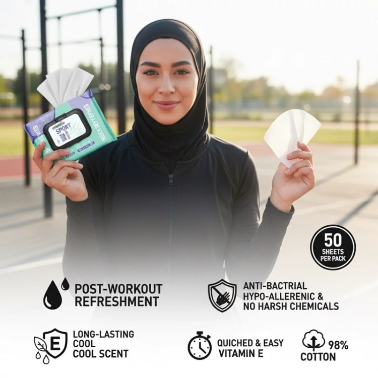 دستمال مرطوب آمبرلا مدل Sport بسته 50 عددی حاوی عصاره خیار و آلوئه ورا رایحه خنک