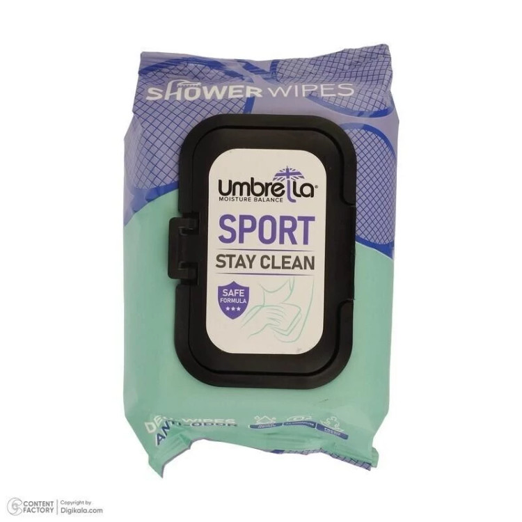 ویژگیهای دستمال مرطوب بدن آمبرلا مدل Sport: • مناسب استفاده پس از فعالیتهای ورزشی و بدنی • حاوی رایحه خنک و ماندگار • آنتیباکتریال • ضدحساسیت و بدون مواد مضر • تنظیمکننده رطوبت سطح پوست • حاوی ویتامین E • از تیرگی پوست زیر بغل و ایجاد قارچ پوستی جلوگیری میکند • سریع و به سادگی قابل استفاده است • 100% پنبهای • هر بسته حاوی 50 برگ دستمال مرطوب --------------- دستمال مرطوب بدن آمبرلا (Shower wipe): دستمال مرطوب بدن آمبرلا با رایحههای ماندگار و خاص گزینهای ایدهآل برای زمانهاییست که به هر دلیلی نمیتوانید دوش بگیرید؛ اما دوست دارید بوی عرق را از بین ببرید و حس شادابی و طراوت را به بدن برگردانید. استفاده از شاوروایپ آمبرلا بسیار ساده و در هر مکانی امکانپذیر است. شاور وایپ یا همان دستمال مرطوب بدن آمبرلا با خاصیت آنتیمیکروبیال، میزان رطوبت بدن را تنظیم و از بروز بیماریهای پوستی مانند قارچ جلوگیری میکند. فرمولاسیون دستمالهای مرطوب بدن آمبرلا ترکیبیست مدرن از روغن کرچک هیدروژنه، عصاره خیار، پودر برگه آلوئهورا، ویتامین E و منیزیم هیدروکساید. از آنجایی که در دستمالهای مرطوب بدن آمبرلا از آلومینیوم کلراید استفاده نشدهاست؛ محصولاتی بدون ریسک و سلامت هستند.