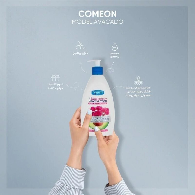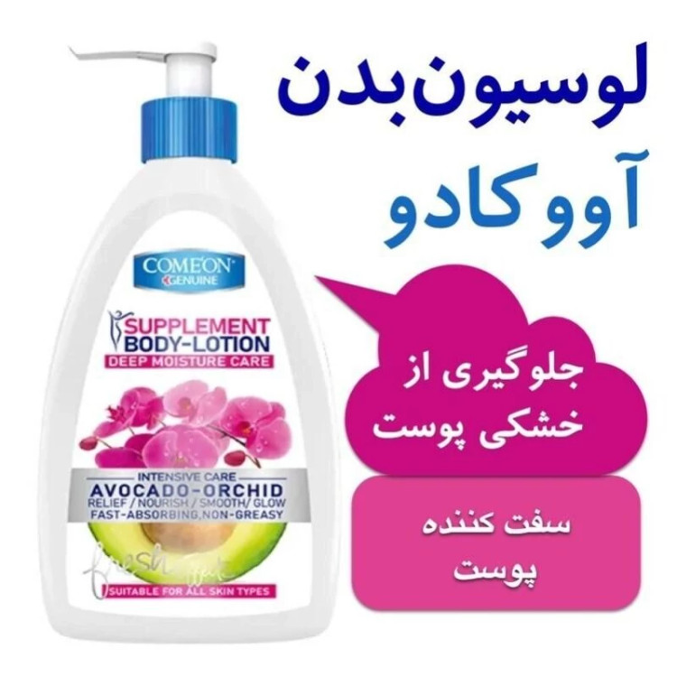 لوسیون بدن آووکادو کامان حجم 500 میل با جلوگیری از خشکی پوست و کاهش خارش و التهاب سفت کننده پوست
