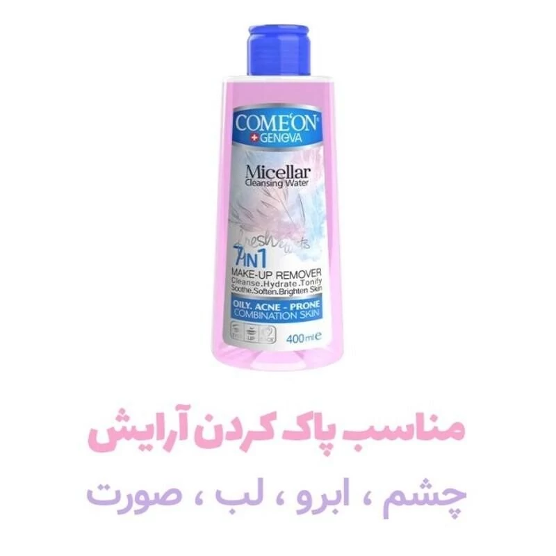 محلول آرایش پاک کن صورت کامان ComeOn - میسلار واتر Micellar مناسب پوست چرب و جوش دار و حساس حجم 400 میل کد 403