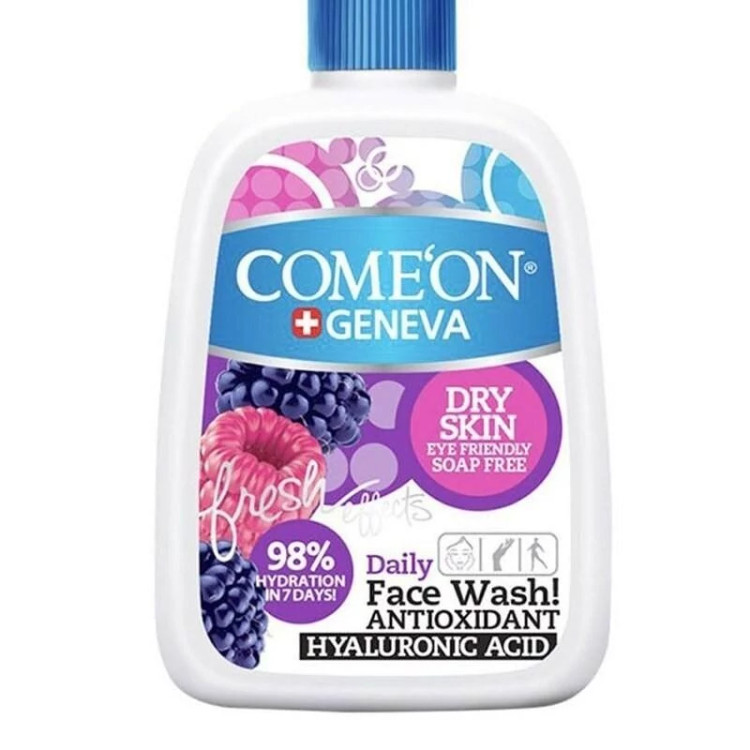 ژل شستشو صورت کامان Come`On - Dry حجم 500 میلی لیتر ، حاوی عصاره پشن بری، هیالورونیک اسید و ویتامین E می باشد و برای پوست های خشک و حساس مناسب است. این محصول علاوه بر رطوبت رسانی پوست، با داشتن آنتی اکسیدان های قوی از پیری و ایجاد چین و چروک پوست نیز جلوگیری به عمل می آورد. همچنین ژل شستشو صورت کامان Come`On - فاقد مواد صابونی بوده و با فرمولاسیون ملایم و سازگار با پوست، قابلیت استفاده دور چشم را دارد.